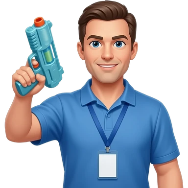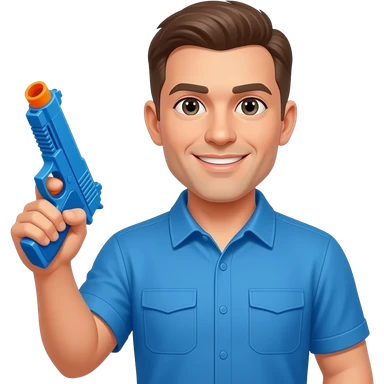 coach in a blue shirt with a plastic toy gun emoji
