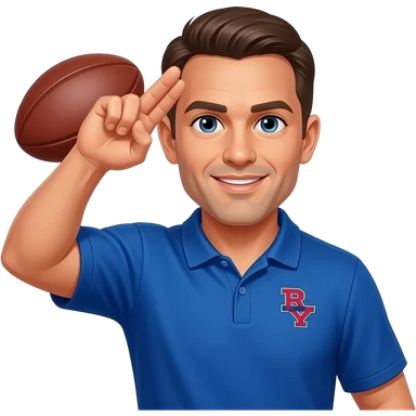 coach in a blue shirt throwing up the guns up salute emoji