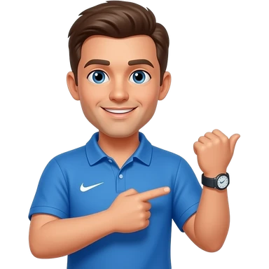 coach in a blue shirt points to his own wrist emoji