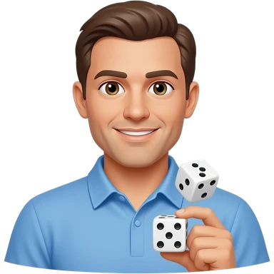 coach in a blue shirt shaking dice in hand emoji | AI Emoji Generator