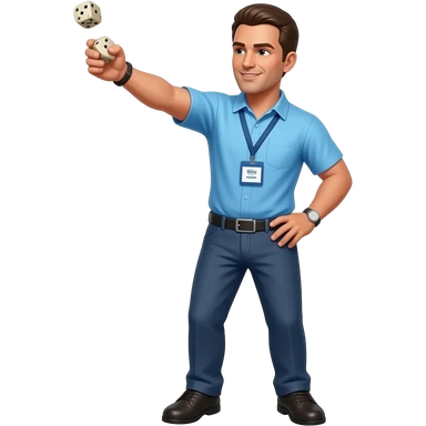 coach in a blue shirt shooting dice emoji