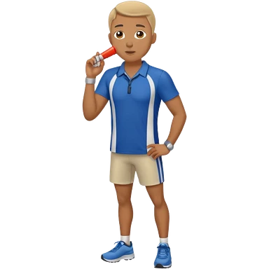 Middle aged Baseball Coach with sports whistle and a baseball glove emoji