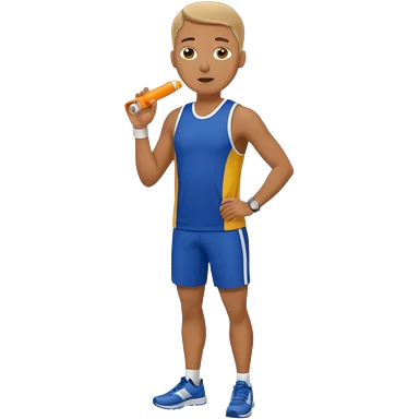 Make a friendly emoji style mascot for Sports Eye. Character will be blue sporty eye with a face, wearing a whistle, symbolizing coach giving guidance. design should be modern, friendly, & energetic, like a sports coach avatar. Primary color #2051E5 small touch of orange. emoji