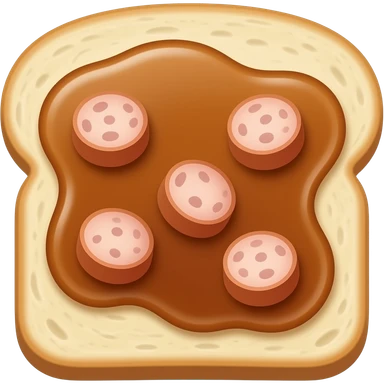 Half of a biscuit with gravy and small cut up sausage pieces on ot emoji
