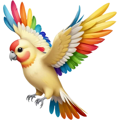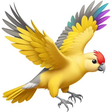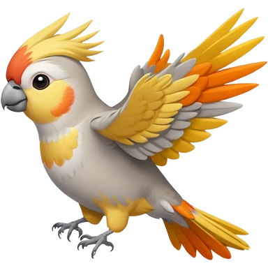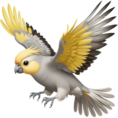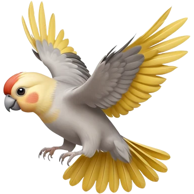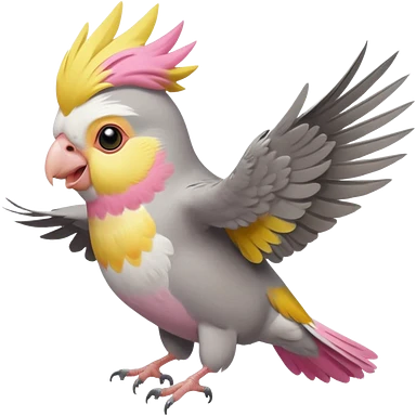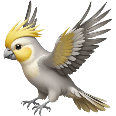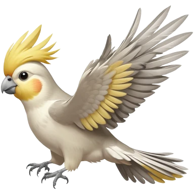 cockatiel in iOS emoji style, wings slightly open, with a friendly expression and classic cockatiel colors emoji