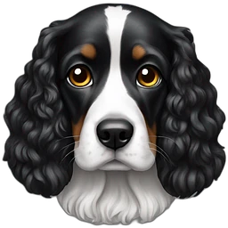 Cocker spaniel anglais noir et feu avec un foulard rouge comme colier emoji