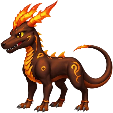 Copper-Bronze Molten-Lava Glow-Cracked Fiery-Runed Draconic Houndoom-Garchomp-hybrid-creature (full body) emoji