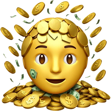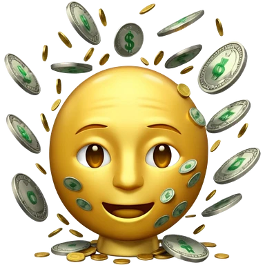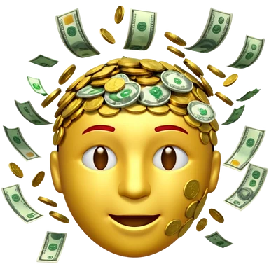 3D glossy money emoji, cracked head, coins and bills burst upward, perfect loop, centered, chroma green background emoji