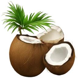 a coconut with a face on it looking down with red, puffy eyes, terrified by what it has done emoji