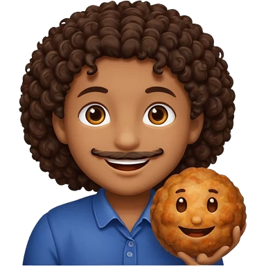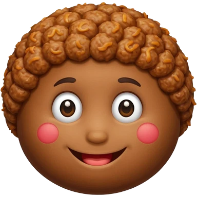 Una polpetta di carne con i capelli ricci scuri e una faccia sorridente emoji