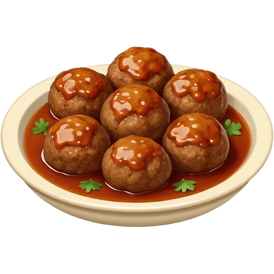 Una polpetta di carne macinata con i capelli ricci scuri e una faccia sorridente emoji