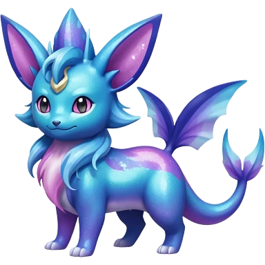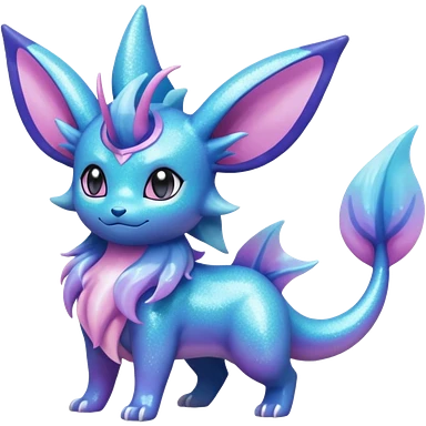 Magical scaley blue-cyan-indigo-purple-violet-pink-gradients nebula shiny glittery Suicune-Vaporeon-Primarina-Amaura-Pokémon-Fakémon-fusion, full body emoji