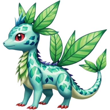 Shiny Exotic Colorful Tropical Shaymin-Vaporeon-Sceptile-Flygon-Meloetta-Pokémon-Fakémon-fusion, full body emoji