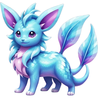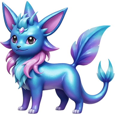 Magical pastel iridescent scaley blue-cyan-indigo-purple-violet-pink-gradients nebula shiny glittery Suicune-Vaporeon-Primarina-Amaura-Pokémon-Fakémon-fusion, full body emoji