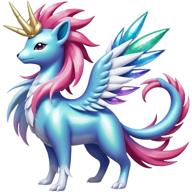Celestial Magical sparkly shiny glittery Suicune-Vaporeon-Primarina-Amaura-Pokémon-Fakémon-fusion, full body emoji