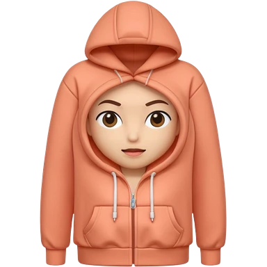 A 3D cartoon peach-coral hoodie with soft folds, drawstrings, and a casual fit, isolated plain background, Memoji-style. emoji