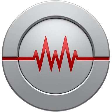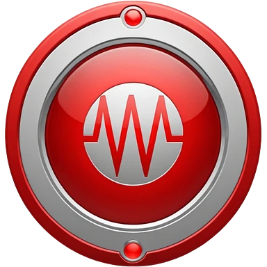 Minimalist medical technology logo. White background. A clean circular shield shape in light gray. Inside the shield — a sharp red signal line forming abstract letters “AI”, resembling a medical alert waveform but not a classic ECG. emoji