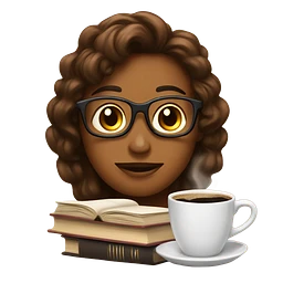 beige cup of coffee on top of a small stack of brown and beige books emoji