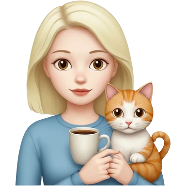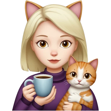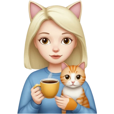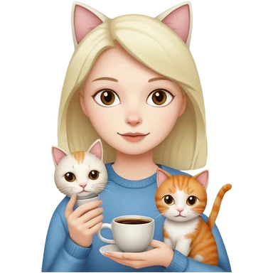Girl with two cats and a cup of coffee emoji