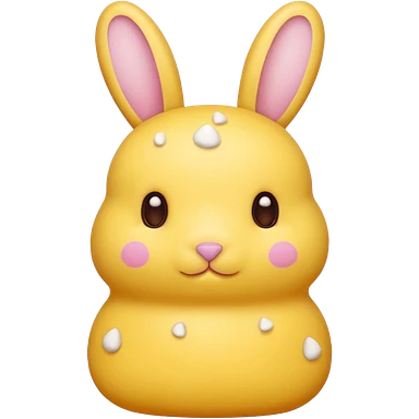 peeps bunny all yellow with three brown dots for eyes and nose no hair no pink emoji