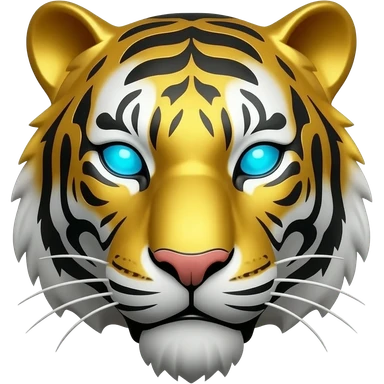 Overdrive: The Royal Tiger Design: A 3D gold-plated tiger head facing forward. Detail: Use Electric Blue glowing eyes to give it a "Neon-Noir" pop against the gold. emoji