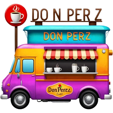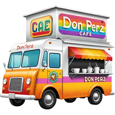 coffee truck with don perez cafe sign emoji