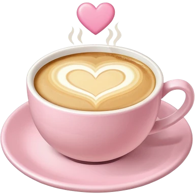 Coffee with a latte art heart in soft pink, beige and yellow pastel colors emoji