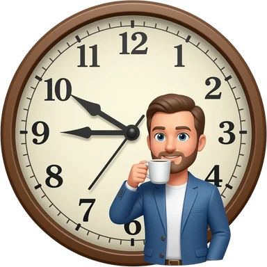 coffee with man and clock in the background and homeostasis emoji