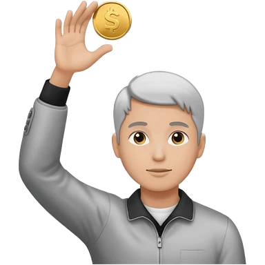 Coin flipped in the air, character already turning away emoji