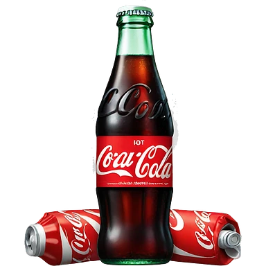 A bottle of coca cola with a face, ears and headphones and clothes emoji
