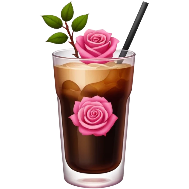 Cold brew coffee with roses pink red and mini small size glas emoji | AI Emoji Generator