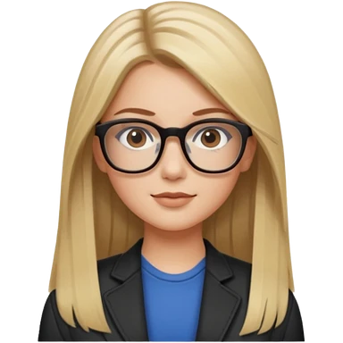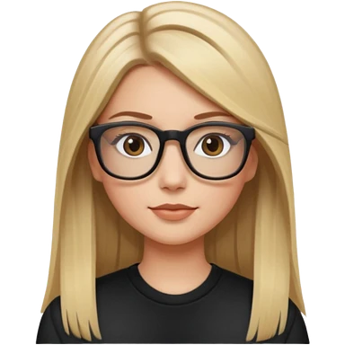 Chica blanca con cabello liso largo balayage (rubio con cafe), ojos cafe obcuro con lentes cuadrados emoji