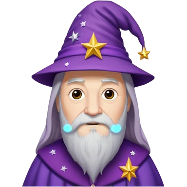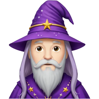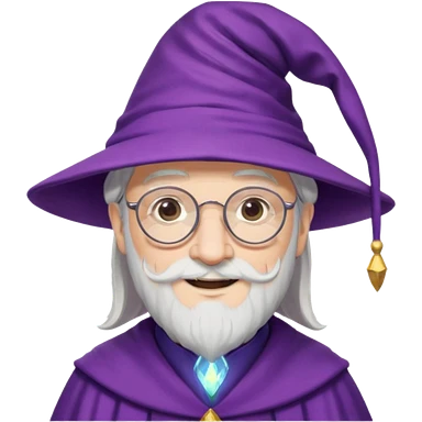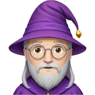 dumbledore grey hair, wear glasses, purple magic hat emoji