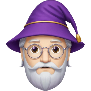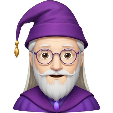 dumbledore, white hair, wear purple magic hat, glasses emoji