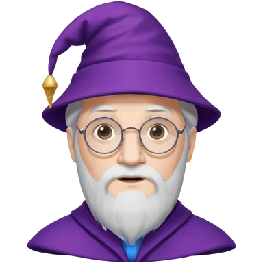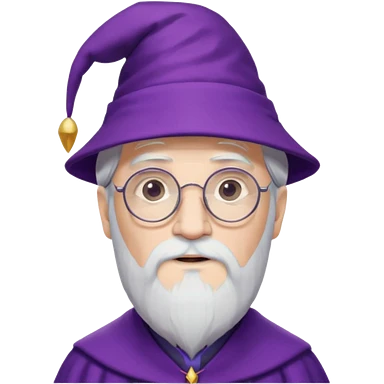 dumbledore white hair, wear glasses, purple magic hat emoji
