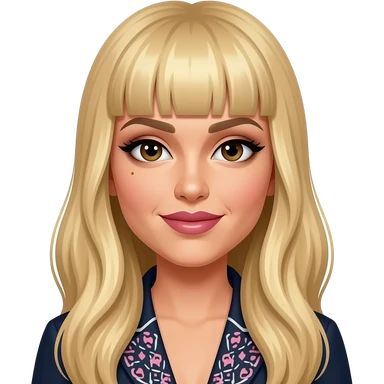 Vice Ganda an artist with long long blonde hair with bangs, and one mole on the upper left of her top lips, with girly makeup and fashion outfit emoji