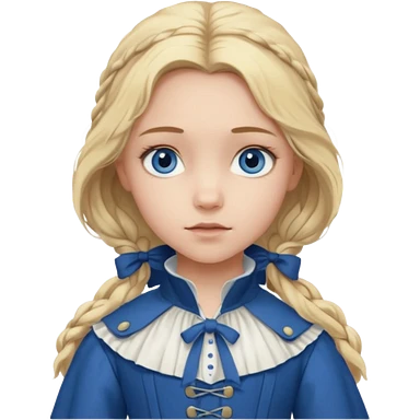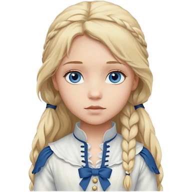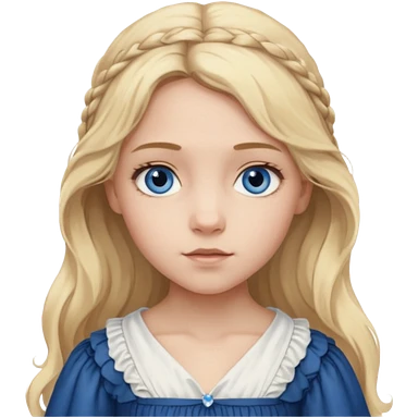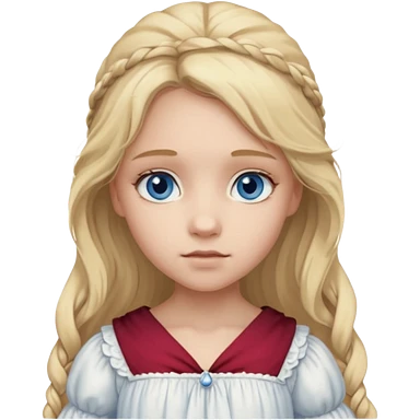 Cosette From Les Miserables with light skin, blue eyes, Blonde long Hair, white outfit emoji