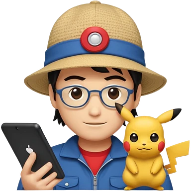gere emoji do Ash Ketchum o personagem de Pokemon de tiferentes tipos se basenado no do whatsapp mais com um toque de programdador emoji