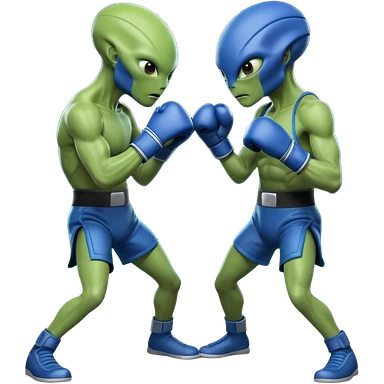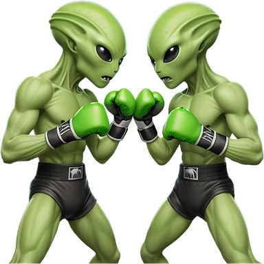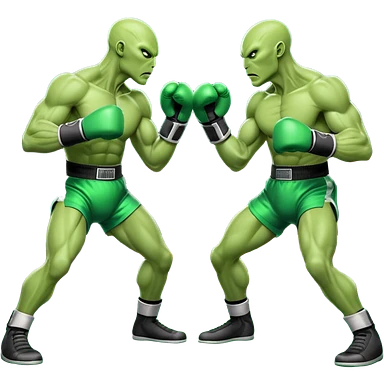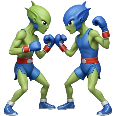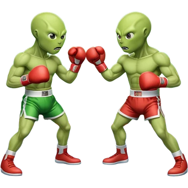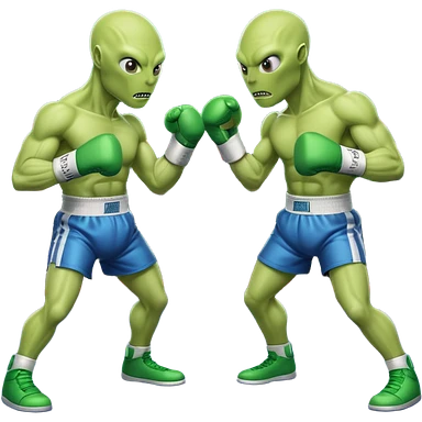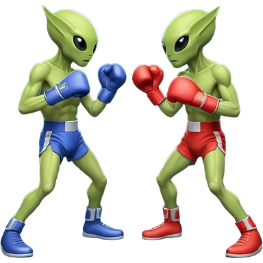 two aliens boxing in a fight stance, facing each other with raised gloves, dynamic action pose, intense expressions, sci-fi arena vibe, 3D cartoon style, mobile game icon style, clean background, no text, no watermark emoji