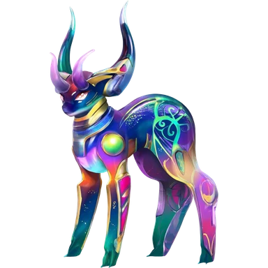 Shiny colorful iridescent long-horned legendary majestic Suicune-Electrike-Manectric-Luxray-Fakémon-fusion-animal-creature, full body emoji