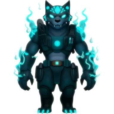 Colorful dark gloomy abyssal garurumon-purloin-feline-Fakemon-Digimon-creature wearing a cool casual fashionable aesthetic clothes and accessories and jewelries and apparels fursona (full body) emoji