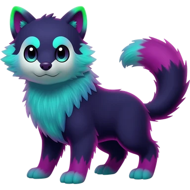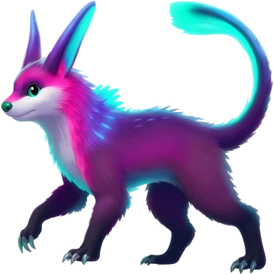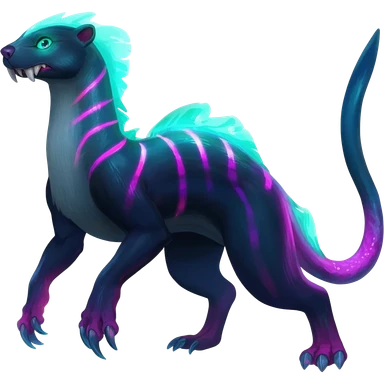 Colorful bioluminescent dark abysmal abyssal neon-glowing Trico-Sergal-Furret-Ferret-Wolverine-Vernid-fusion-Fakemon-animal-hybrid-creature, full body emoji
