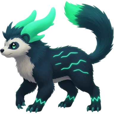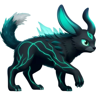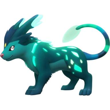 Shiny legendary epic abysmal abyssal bioluminescent dark dusky viridescent Suicune-Anubis-Umbreon-Manectric-Luxray-Fakémon-fusion-animal-creature-hunter, full body emoji