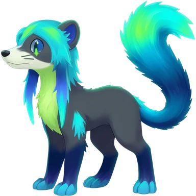 Colorful bioluminescent dark abysmal abyssal neon-glowing Trico-Sergal-Furret-Ferret-Wolverine-Vernid-furry-fursona-fusion-Fakemon-animal-hybrid-creature, full body emoji