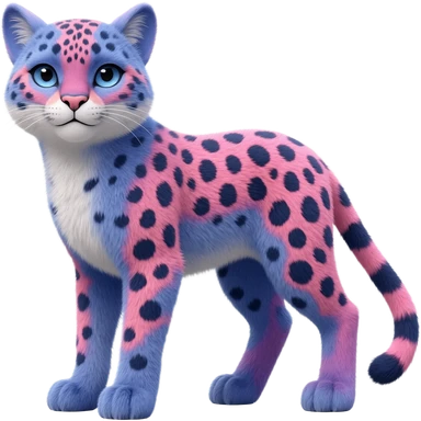 Colorful bluish cute adorable tropical exotic fruity rosy Caracal-Cheetah-Serval-Snow-Leopard-Trico-Sergal-Vernid-fusion-hybrid-animal-creature, full body, with tribal markings emoji | AI Emoji Generator