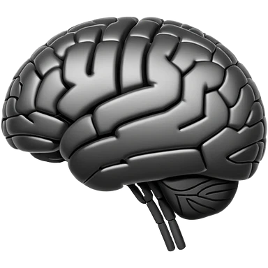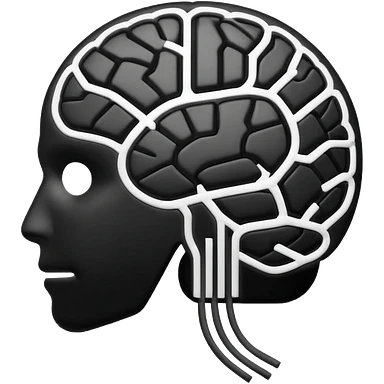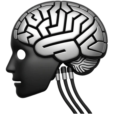 Futuristic AI brain emoji, simplified brain silhouette, metallic black and white, glowing neural lines inside, flat vector design, minimal clean style emoji