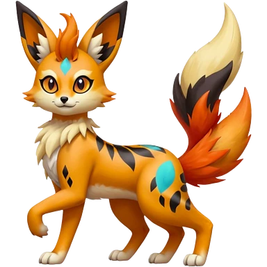 Colorful Meloetta-Flareon-Vernid-Sergal-Serval-Pokémon-Fakémon-fusion-hybrid-creature emoji