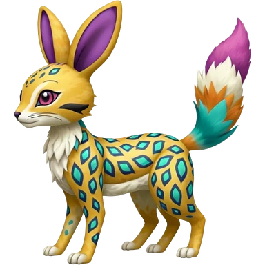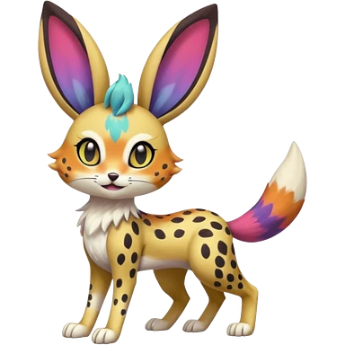 Colorful Meloetta-Bunny-Eevee-Vernid-Sergal-Serval-Pokémon-Fakémon-fusion-hybrid-creature emoji