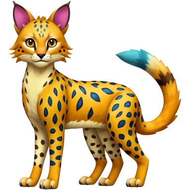 Colorful Caracal-Sergal-Serval-Genet-Pokémon-Digimon-Fakémon-fusion-hybrid-creature emoji | AI Emoji Generator