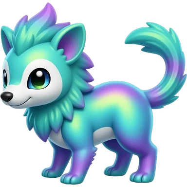 Iridescent Neon Lime-Green-Blue-Purple-Magenta-gradients Minccino-Emolga-Numbat-Sergal-fusion-hybrid-animal-creature, full body emoji